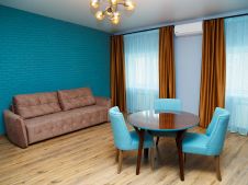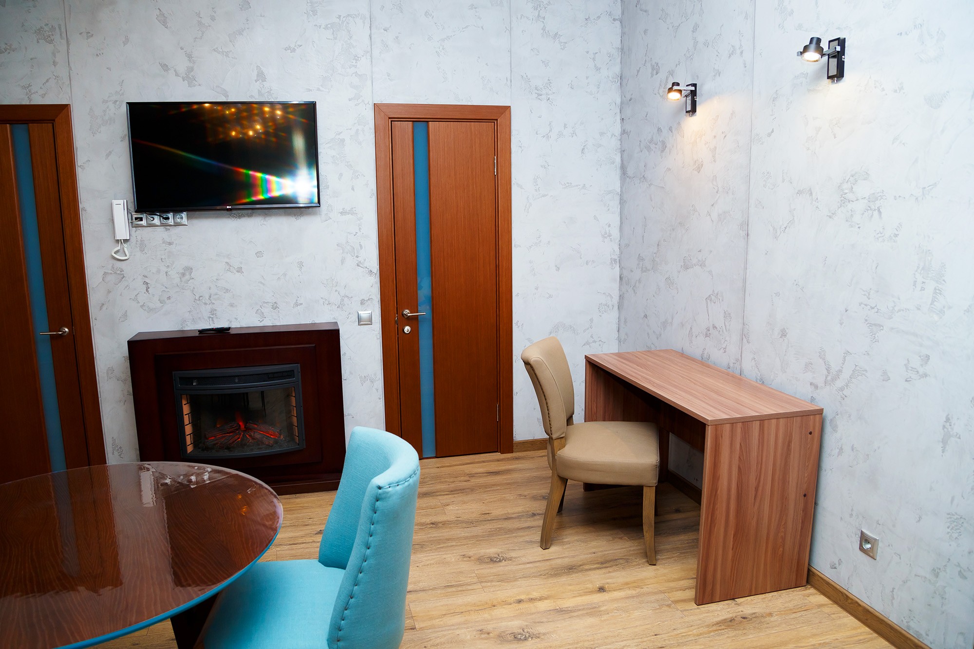a Great stay is guaranteed in this chic, air-conditioned room with a fireplace and Jacuzzi. Spacious one-bedroom Suite for those who like a comfortable stay, a family with children or a company of 4 people. For your convenience, everything you need is available in the room. Original interior design and quality furniture, as well as perfect cleanliness-all for your excellent mood!