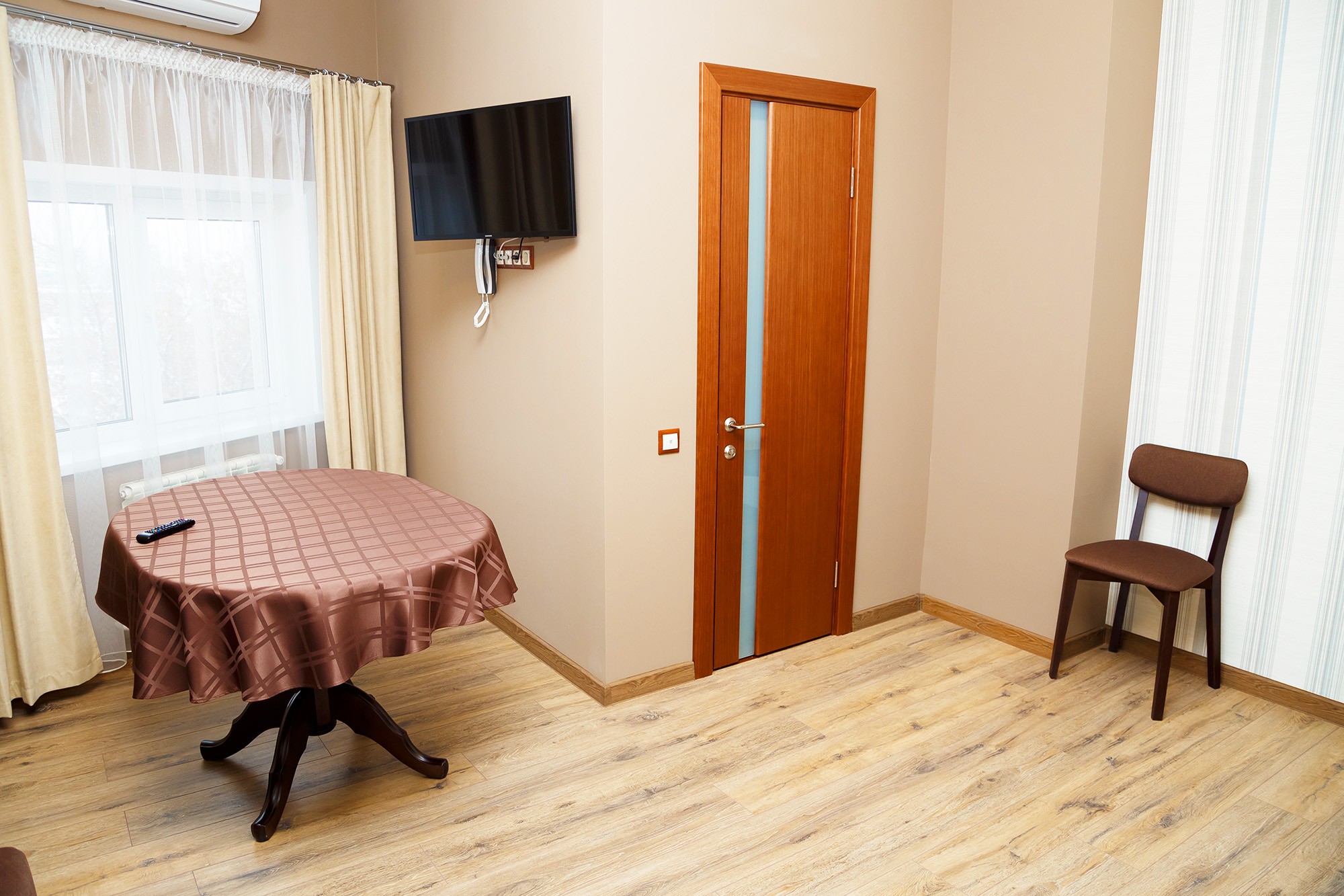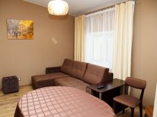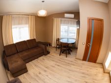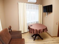 < p>Luxury air-conditioned room with two rooms: living room, bedroom. In the living room there is a corner sofa bed, in the bedroom there is a wide bed with orthopedic mattress. The room seats 4 people, equipped with all necessary for a comfortable stay. < / p>